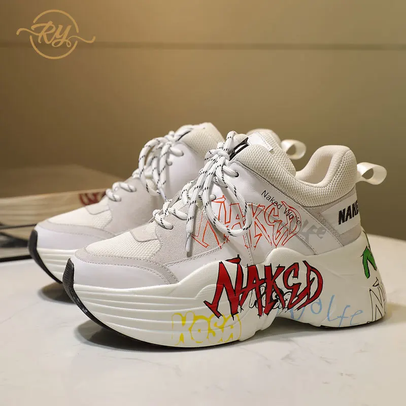 Discount RY-RELAA women sneakers 2018 fashion Genuine Leather platform sneakers ins style high top sneakers