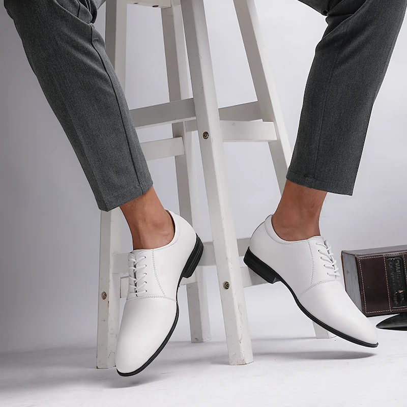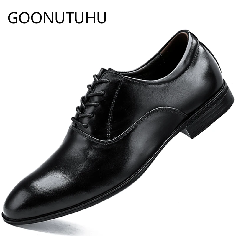 Buy 2019 new fashion men's dress shoes genuine leather classic black brown white big size 36-50 shoe ma