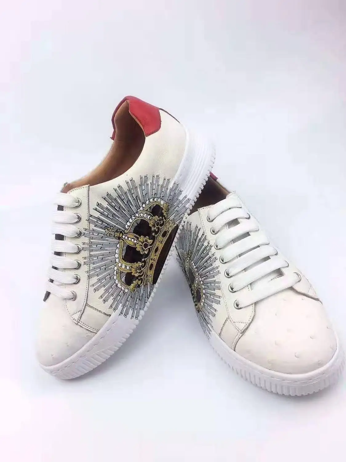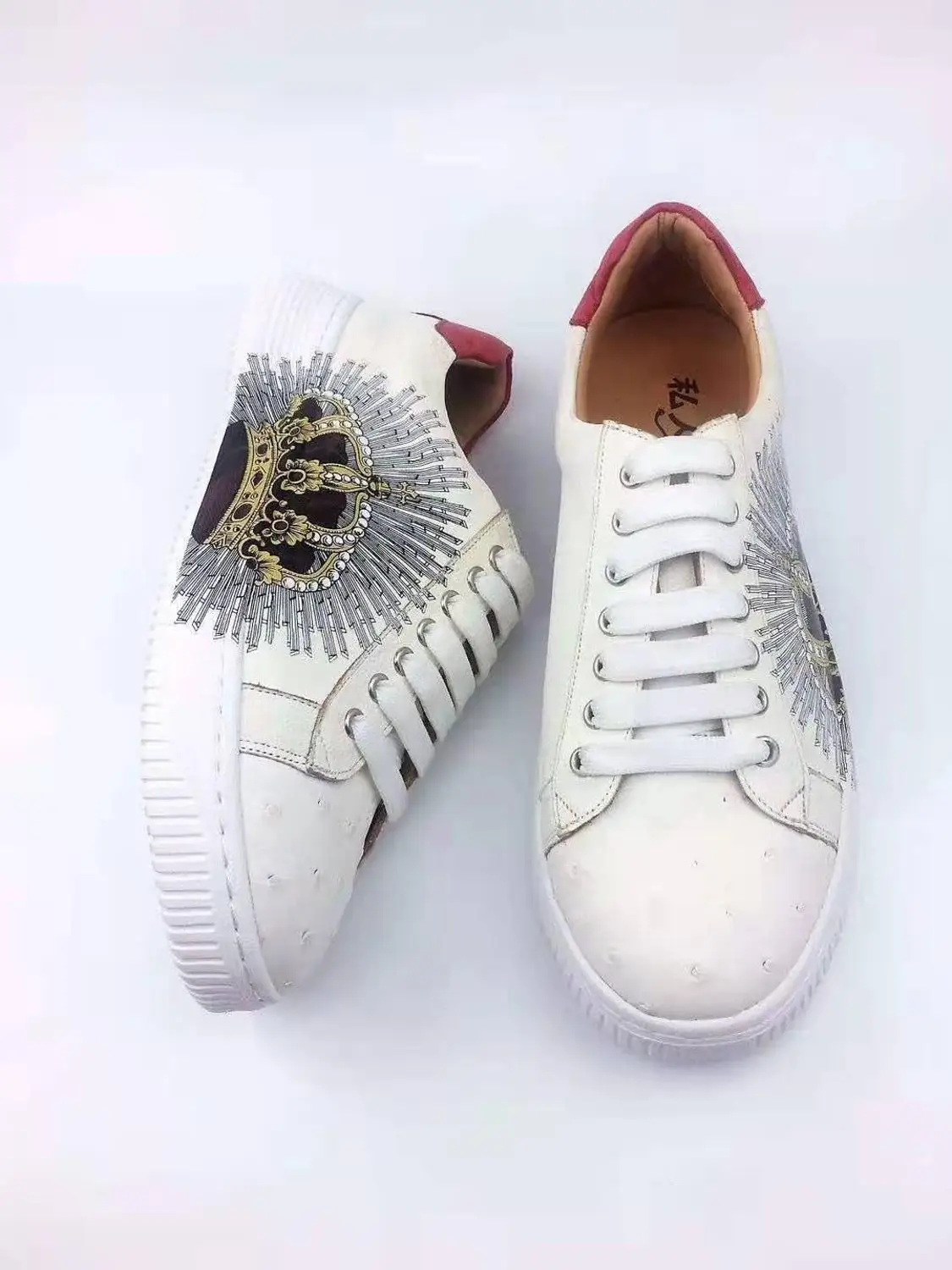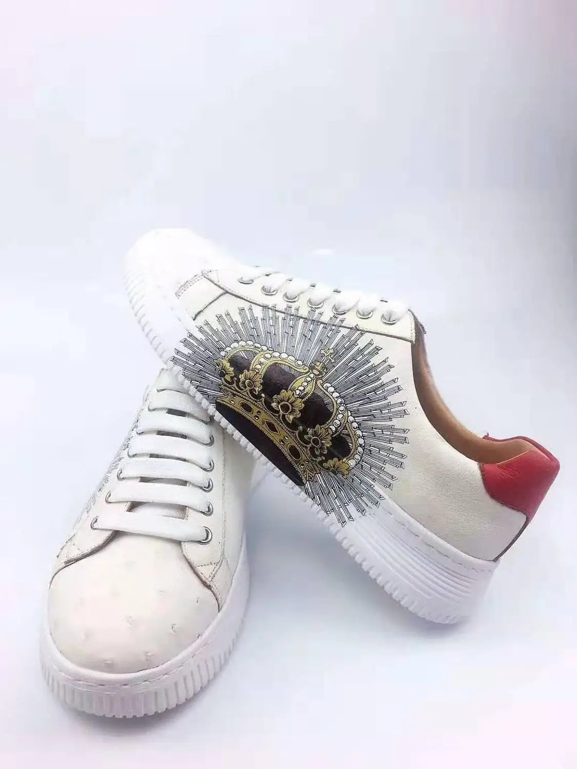 Buy 2019 new production 100% real genuine ostrich skin white color fashion sneaker shoe with genuine co
