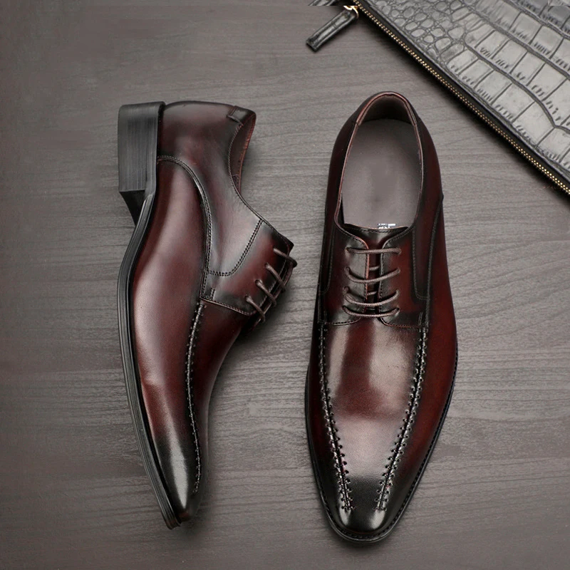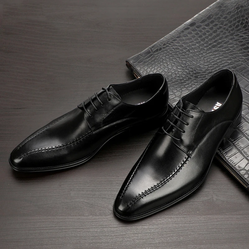 Get Merkmak Genuine Leather Men Dress Shoes Fashion Pointed Toe Lace-up Oxfords Business Formal Leather