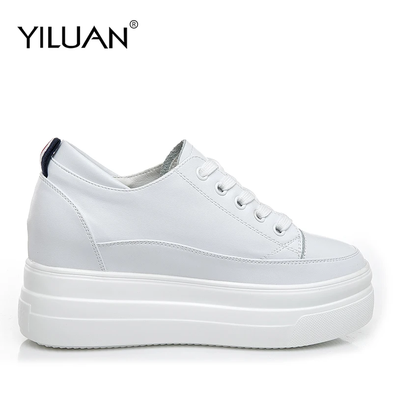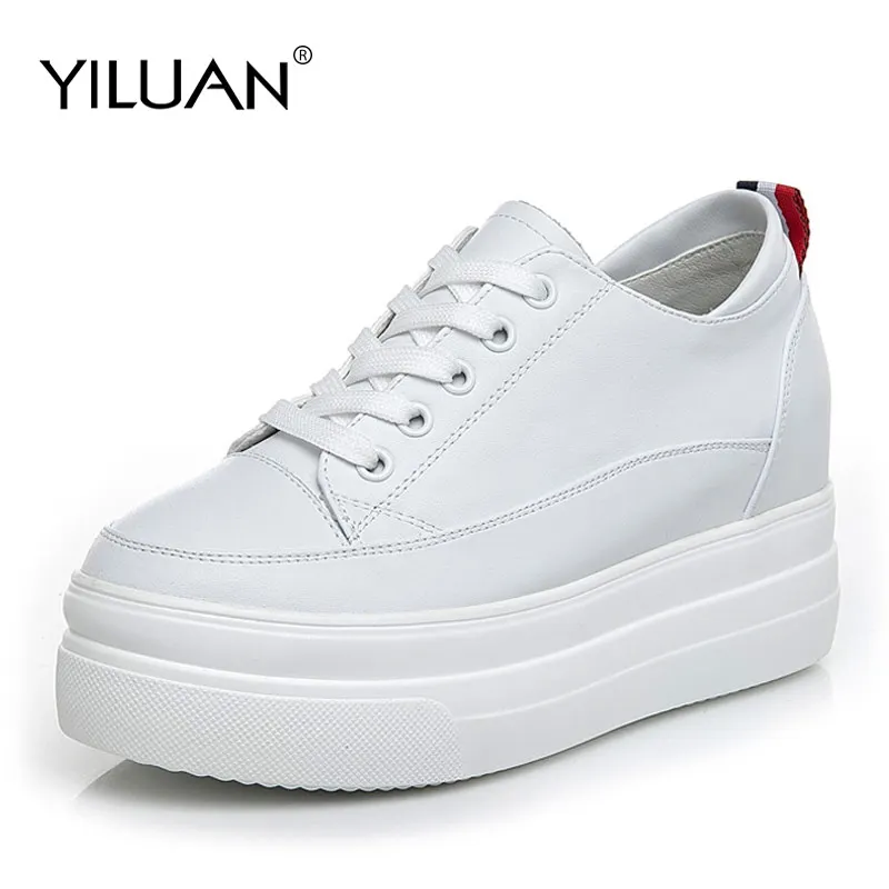 Hot Yiluan Genuine Leather Women's White Shoes Platform Sneakers 2019 Spring autumn Fashion Women Black