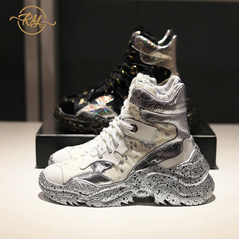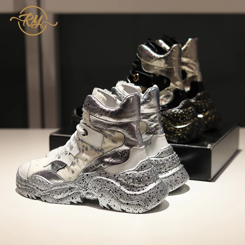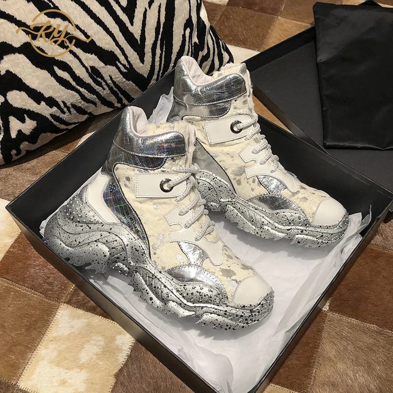 Sale RY-RELAA women sneakers 2018 fashion Genuine Leather high top sneakers ins style wedge sneakers cas