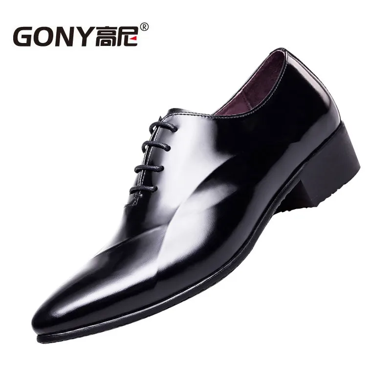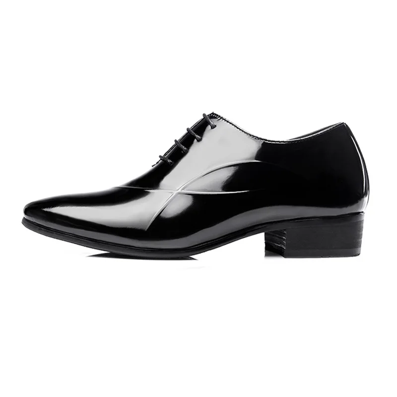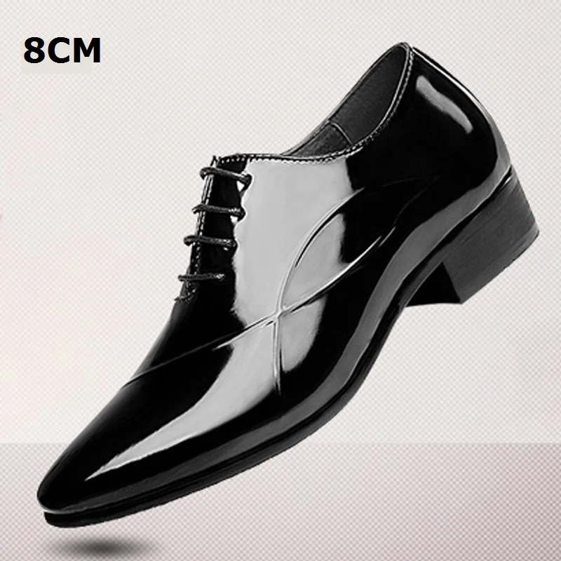 Hot Fashion Classic Black Patent Leather Oxford Business Shoes Increase Men's Height 6CM Invisibly