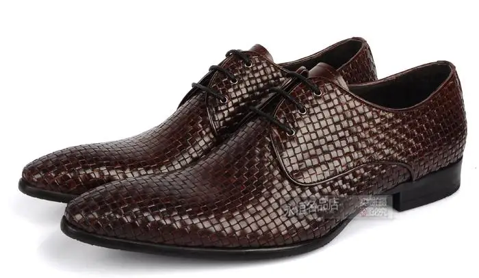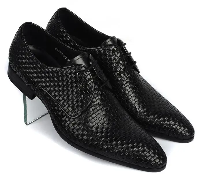 Discount Knitted Leather Mens Fashion Business Office Dress Shoes Italian Oxfords Derby Shoes Pointed Toe We