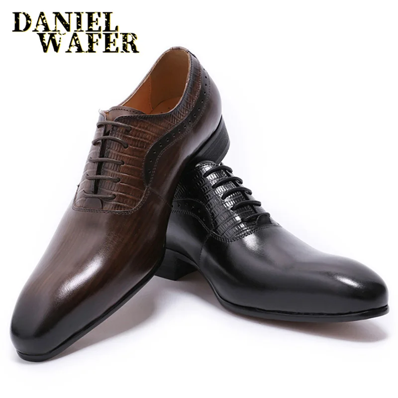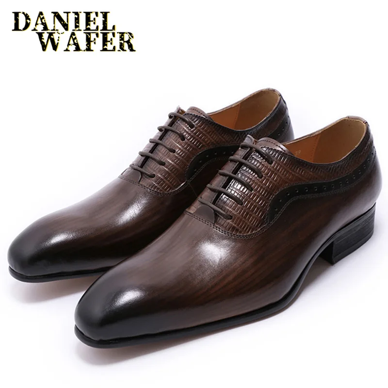 Buy LUXURY BRAND ITALIAN MEN LEATHER SHOES FASHION COFFEE BLACK LACE UP POINTED TOE OFFICE WEDDING FOR