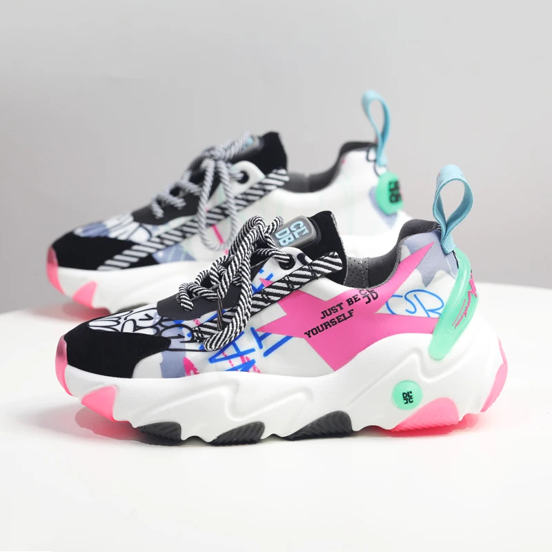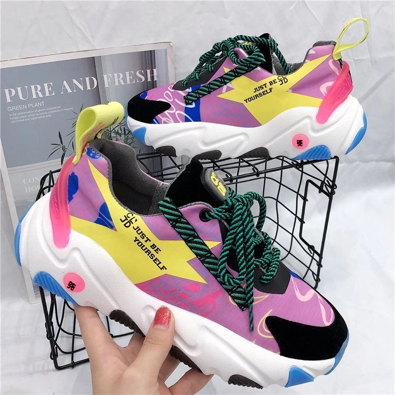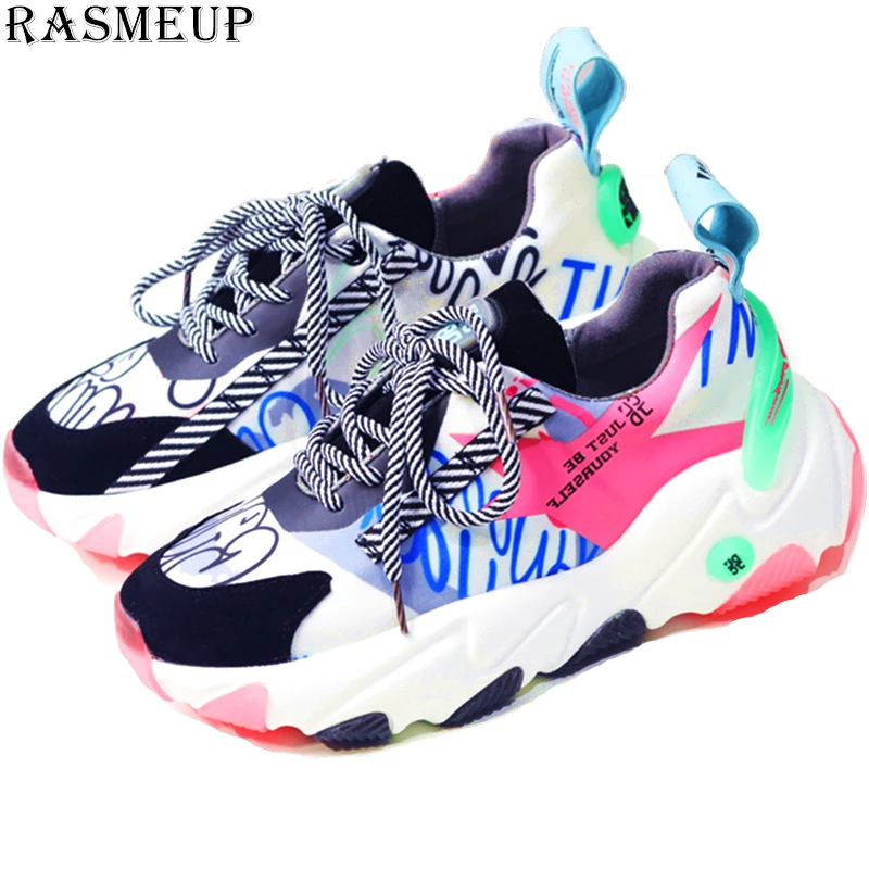 Sale RASMEUP Street Style Women's Chunky Sneakers Breathable Women Platform Shoes 2019 Fashion Glitter L