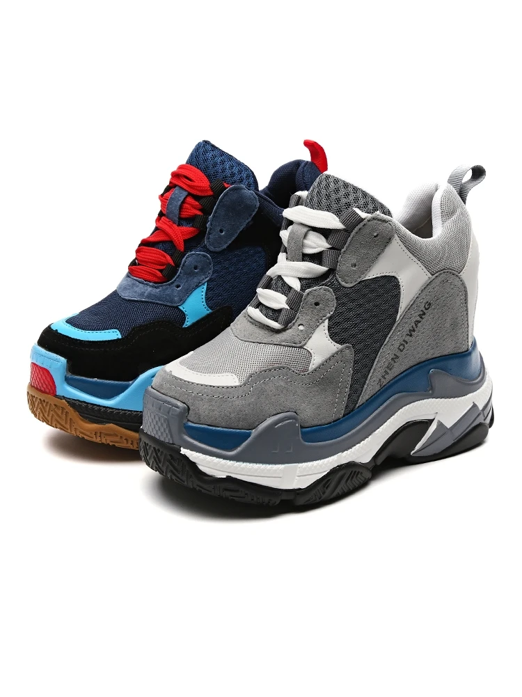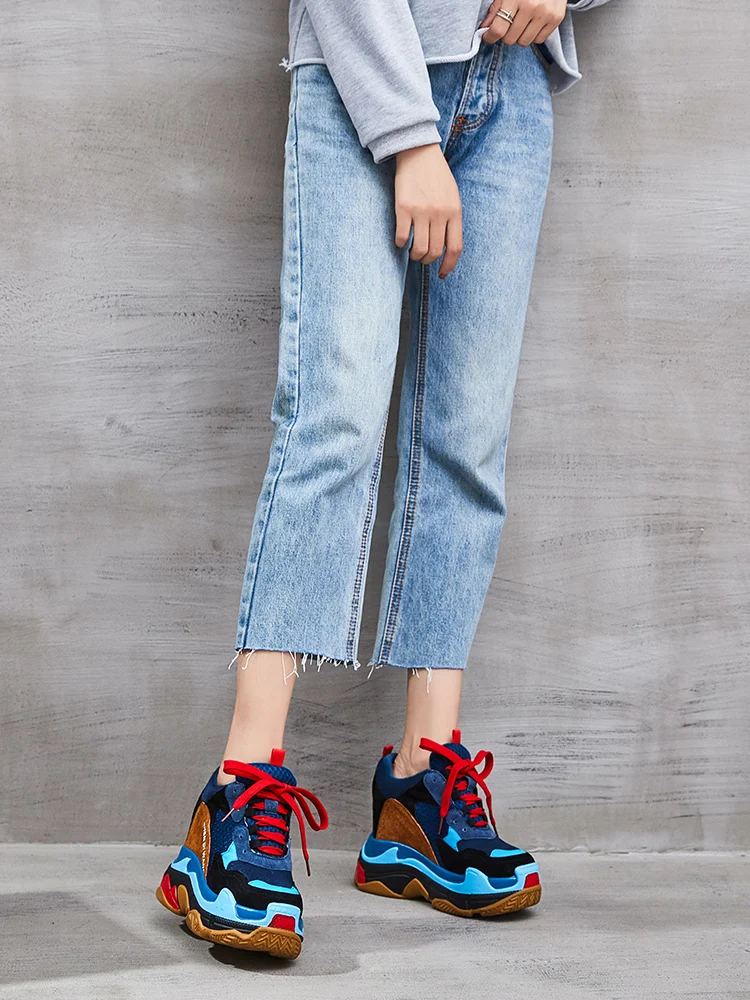 Discount SWYIYV Fashion Shoes Women Platform Sneakers Leather 2019 New Hided Increased Chunky Heels Casual S