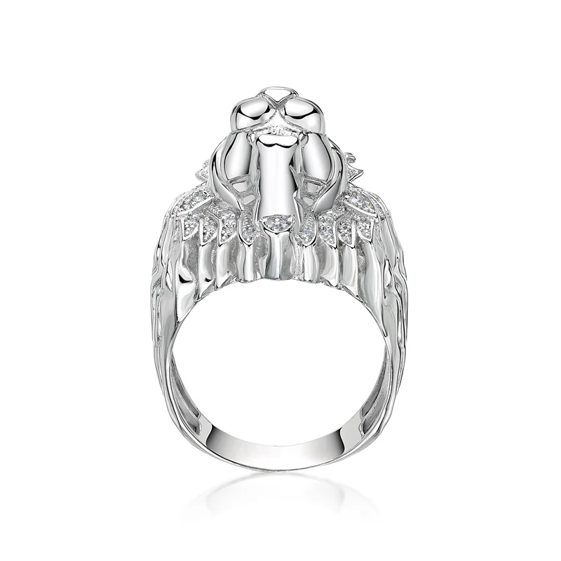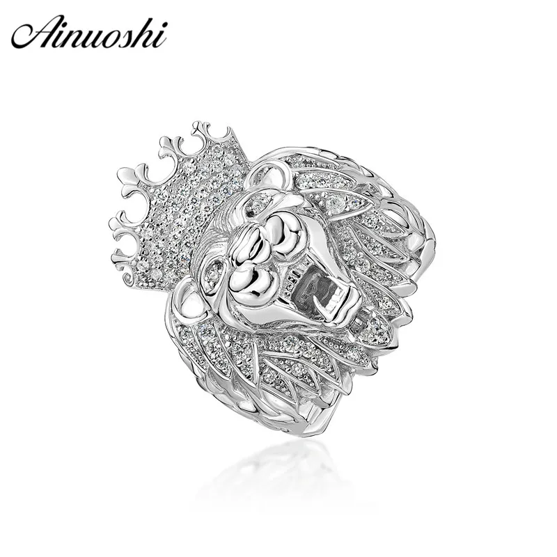 Discount AINOUSHI 925 Sterling Silver Wedding Engagement Lion King Face Head Ring Male Silver Anniversary Pa
