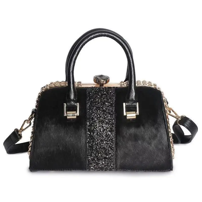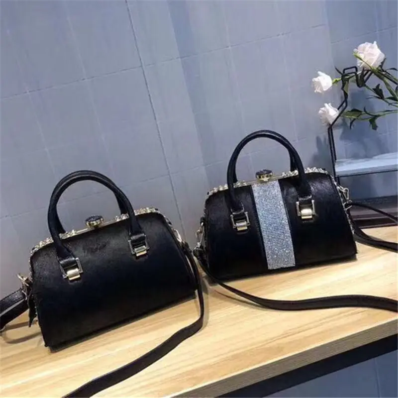 Hot Fashion Brand Leather Fur Soft Real Leather Women Handbag Two Pieces Female Shoulder Bag Girls Mess