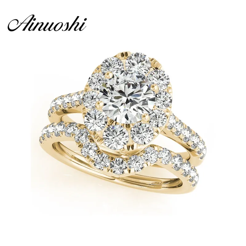 Discount AINUOSHI Fashion 925 Sterling Silver Women Engagement Ring Sets 1 Carat Yellow Gold Color Lady Brid