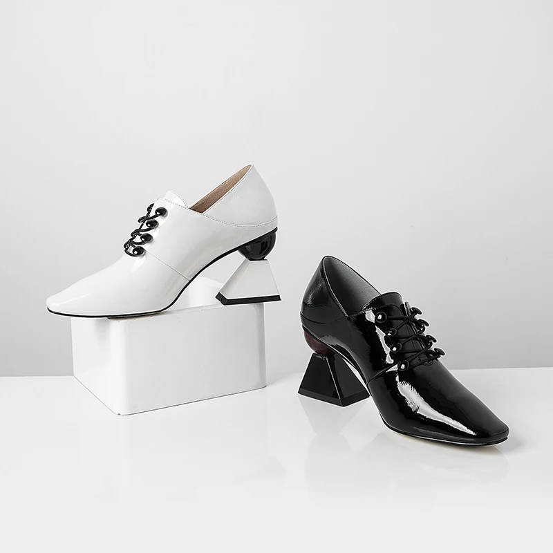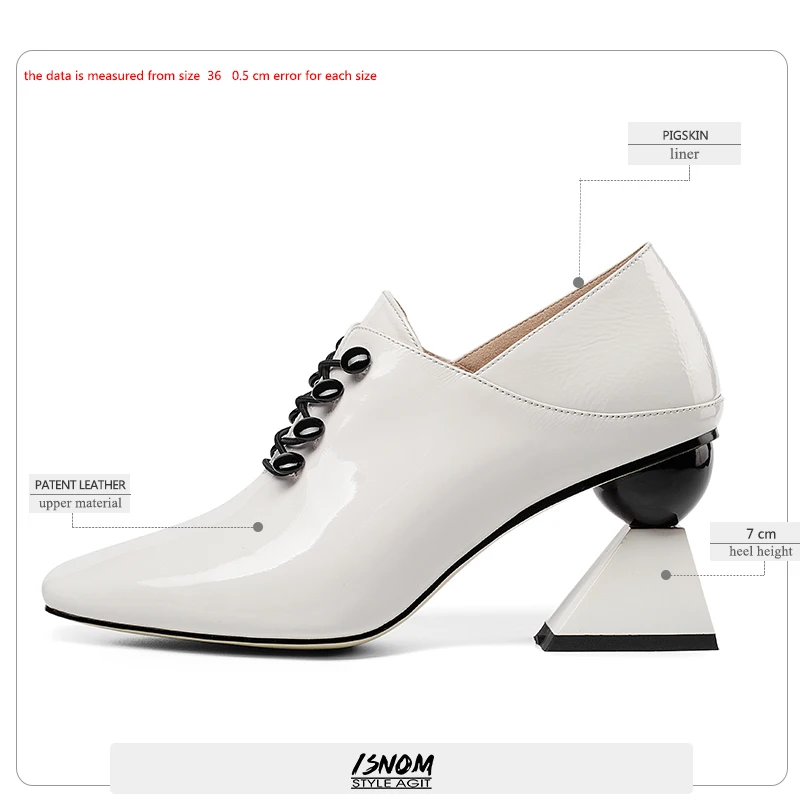 Sale ISNOM Patent Leather Women Pumps Square Toe Cross Tied Shoes Unusual High Heels Strange Ladies Fash