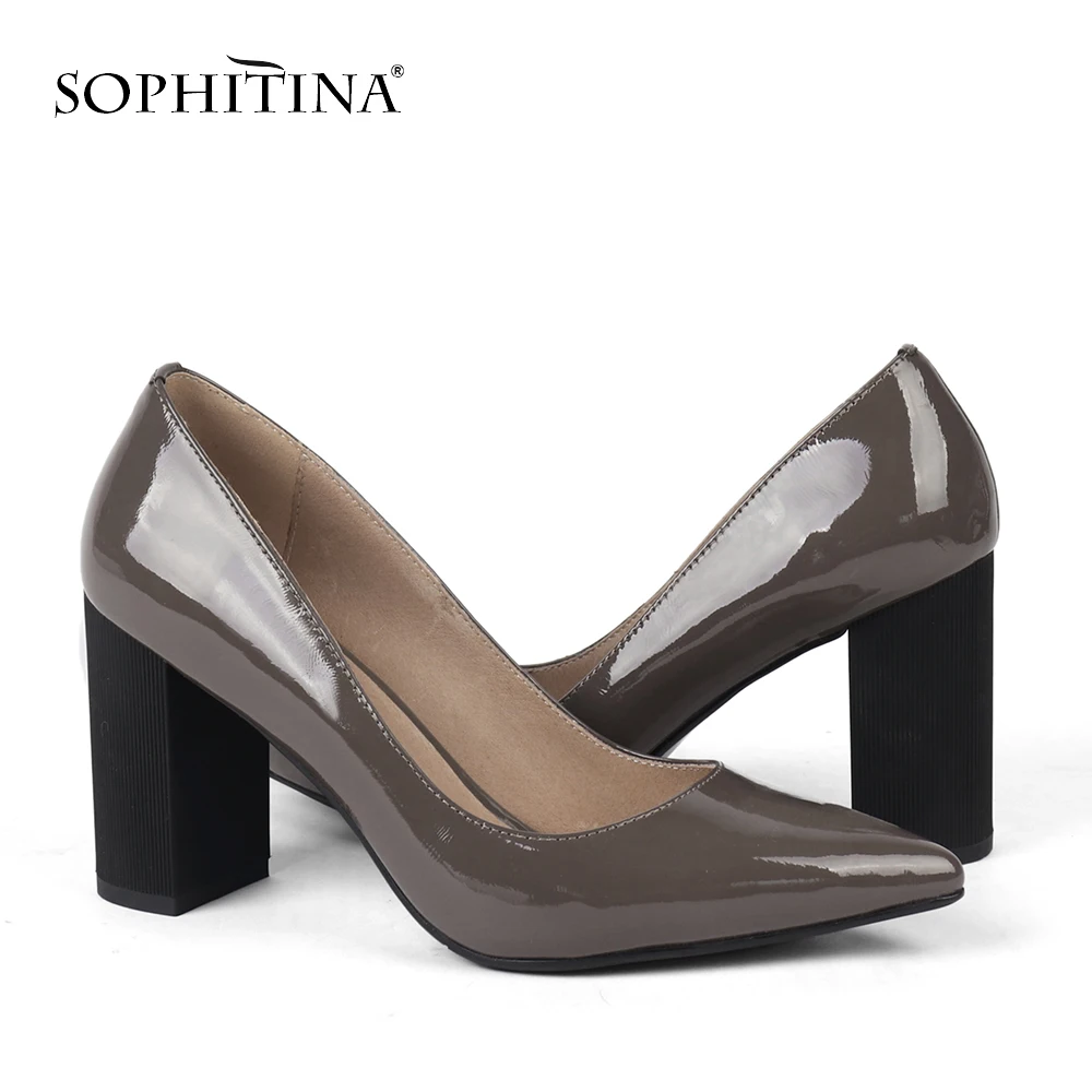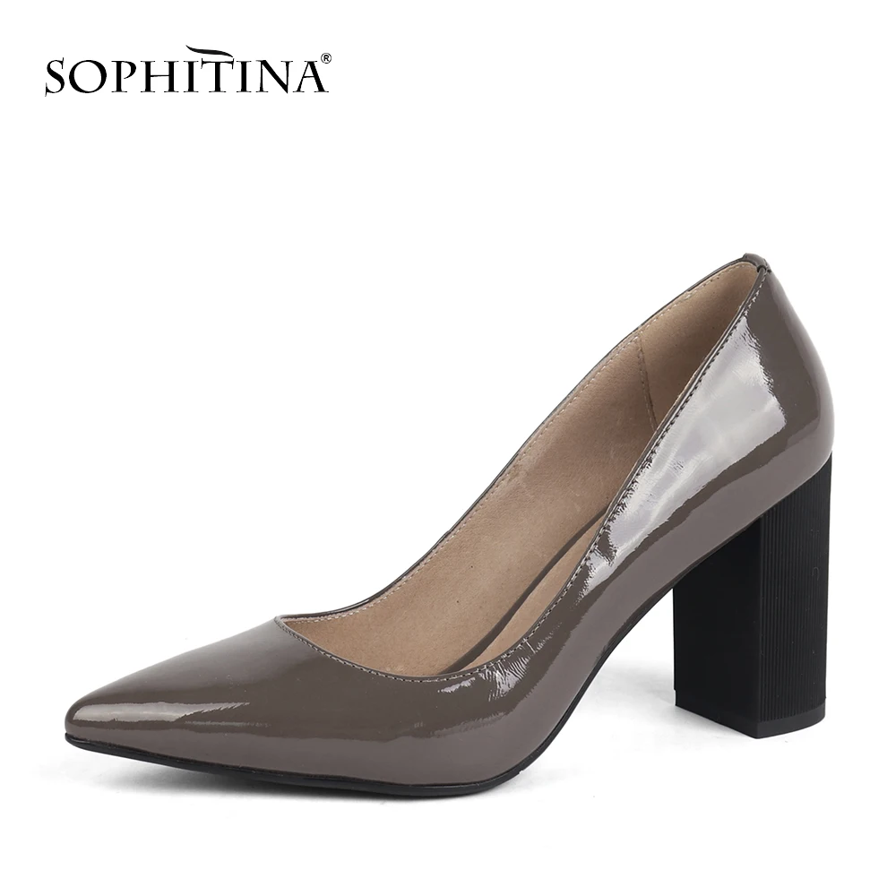 Get SOPHITINA Elegant Square Heels Pumps Comfortable Patent Leather Pointed Toe Shoes Woman High Qualit