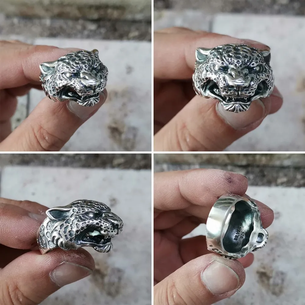 NEW LINSION 925 Sterling Silver Details Leopard Panther Ring Mens Biker Ring TA151 US Size 7~15