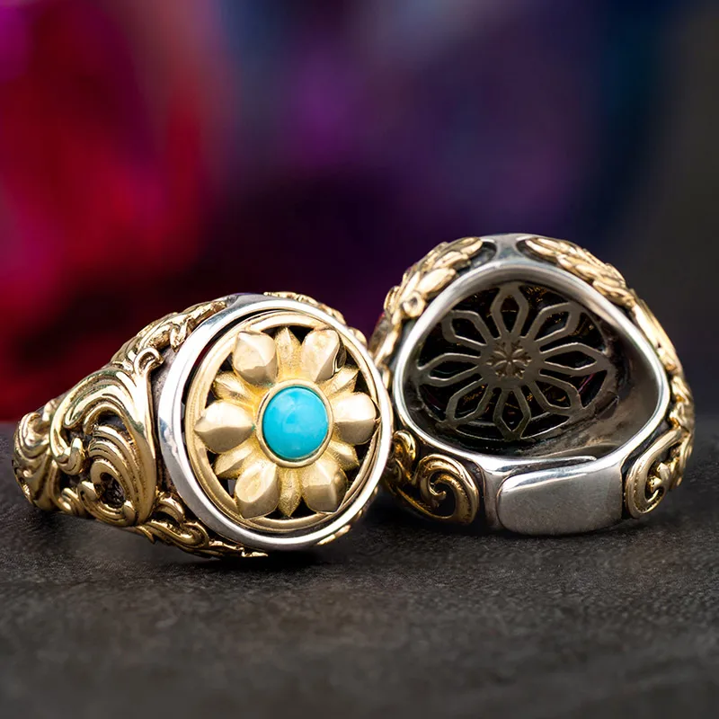NEW 925 Sterling Silver copper inlay lotus rings for men with high speed rotation fashion jewelry mygri
