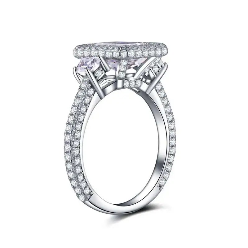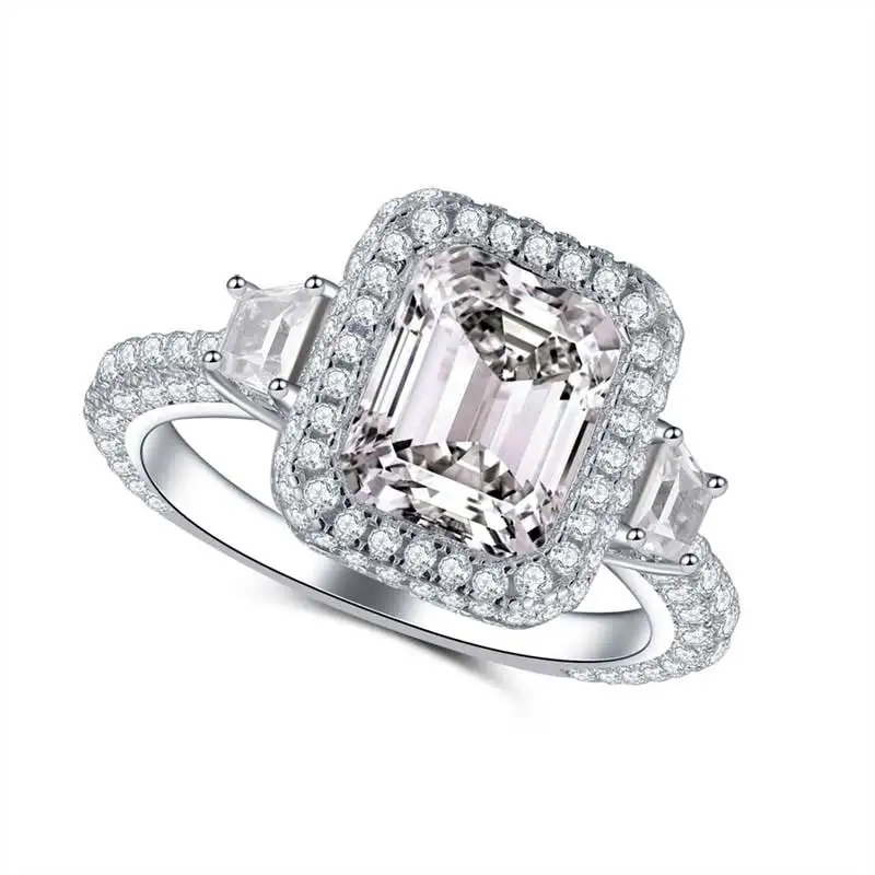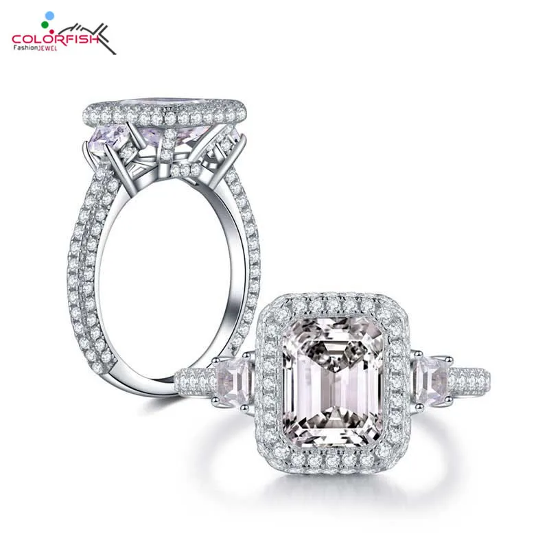 Discount COLORFISH Solid Sterling Silver 3-stones Engagement Ring Square Cut 2 ct Luxury Jewelry For Women D