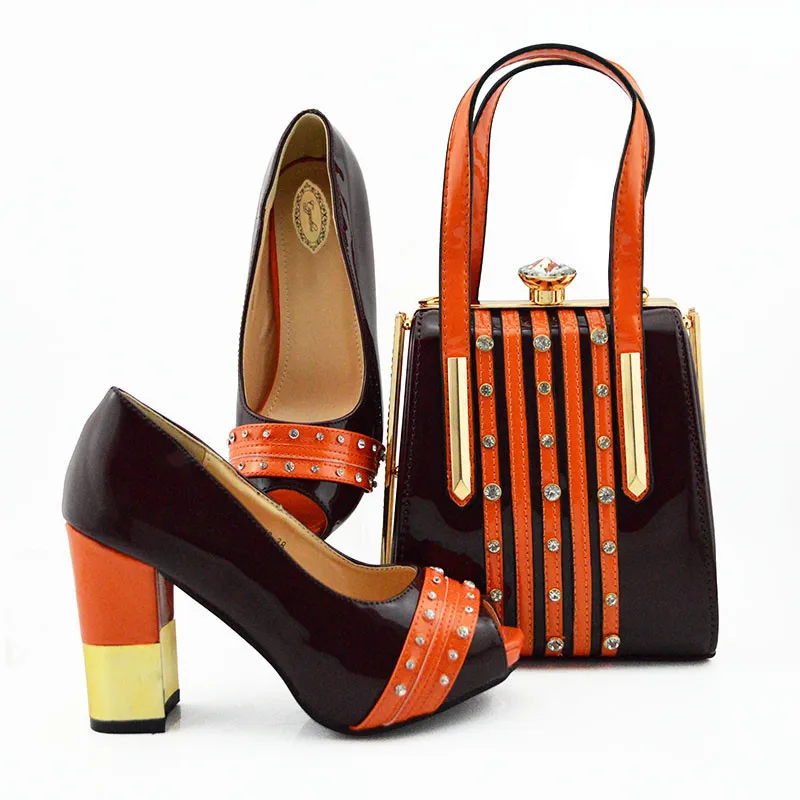 Get Italian Style Rhinestone Evening Shoes And Matching Bag Set Summer Fashion Woman High Heels Shoes A