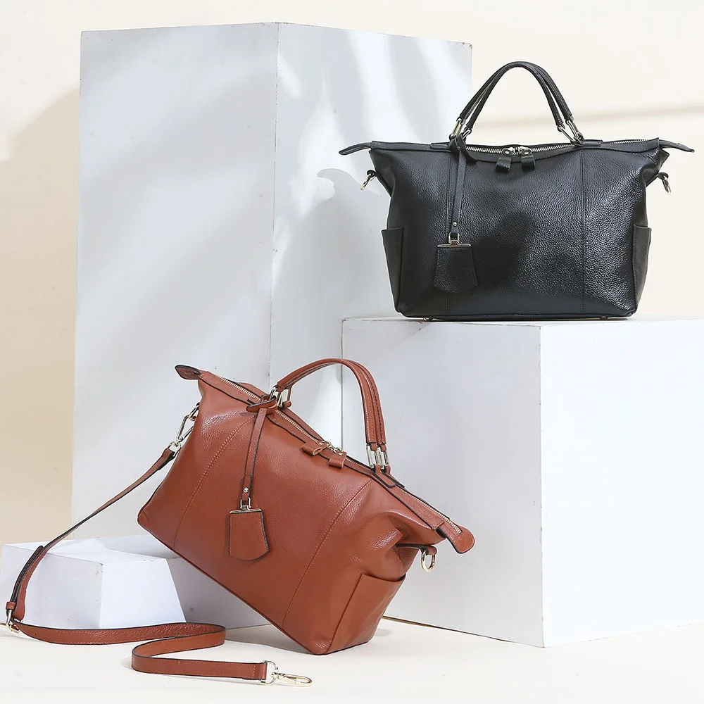 NEW Zency Women Casual Tote 100% Genuine Leather Large Capacity Black Handbag Simple Lady Crossbody Mes