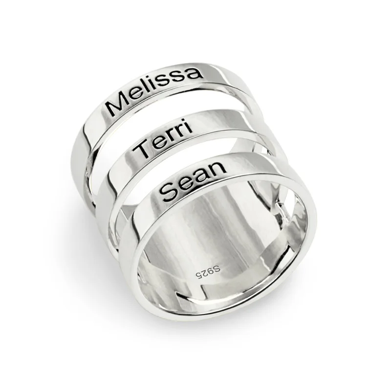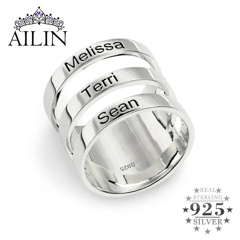 Buy AILIN Engraved Three Names Ring Sterling Silver Triple Name Ring for Mother Women Rings Custom Name