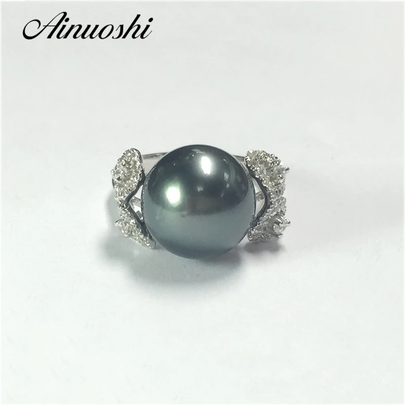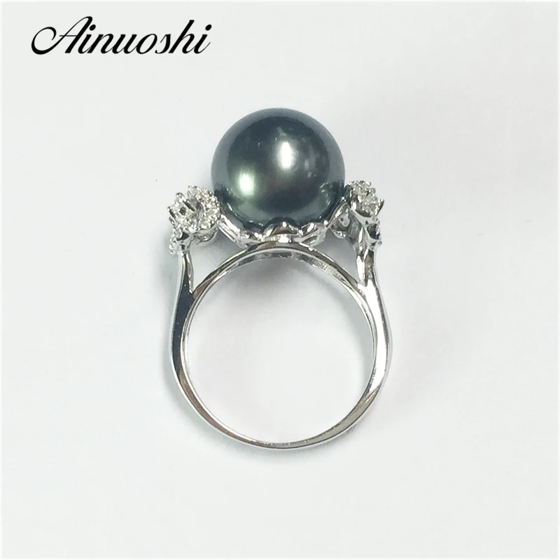 Sale AINUOSHI 925 Sterling Silver Hear Shaped Women Wedding Ring Tahitian Pearls 12mm Round Pearl Annive