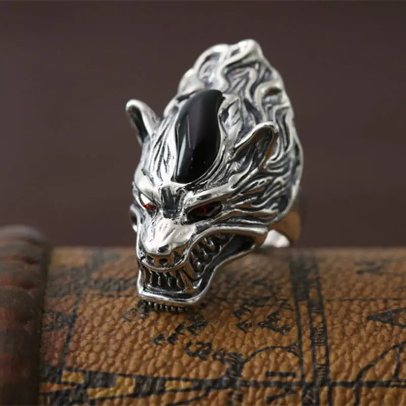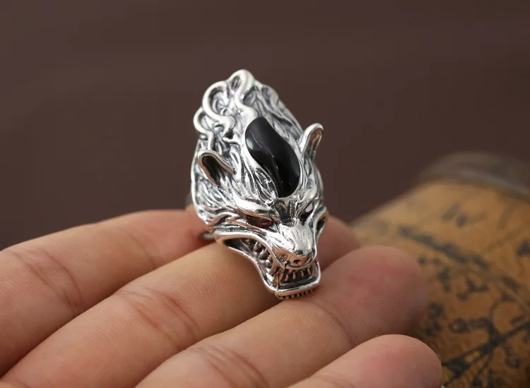 NEW Gothic Silver 925 Wolf Wide Band Finger Rings Men Top Craft Cool 925 Sterling Silver Jewelry Men Th