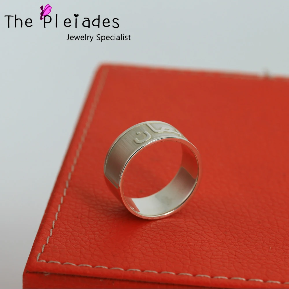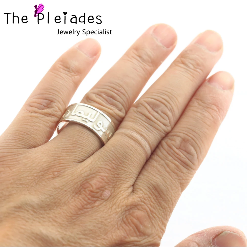 Get 925 Solid Silver Arabic Ring 3D Style Engraved 10mm Band Custom Name Words Ring Personalized Men Je