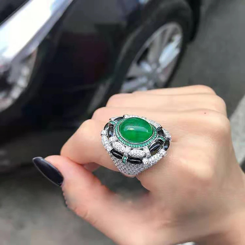 Sale Local focal Semi-precious stone color matching design fashion ring