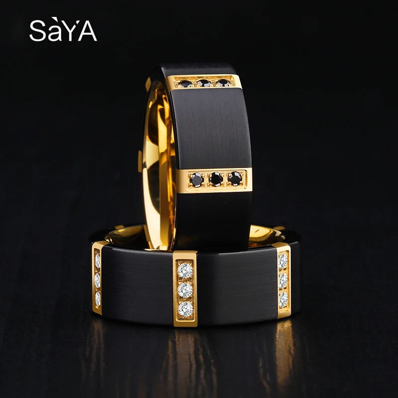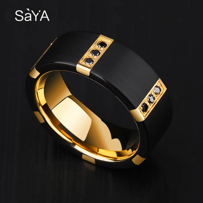 Sale New Arrival 8MM Width Black Tungsten Carbide Rings For Man With Gold Plating Inside Black Color Thr