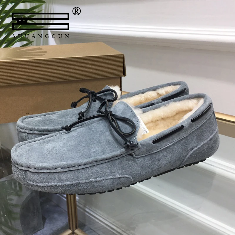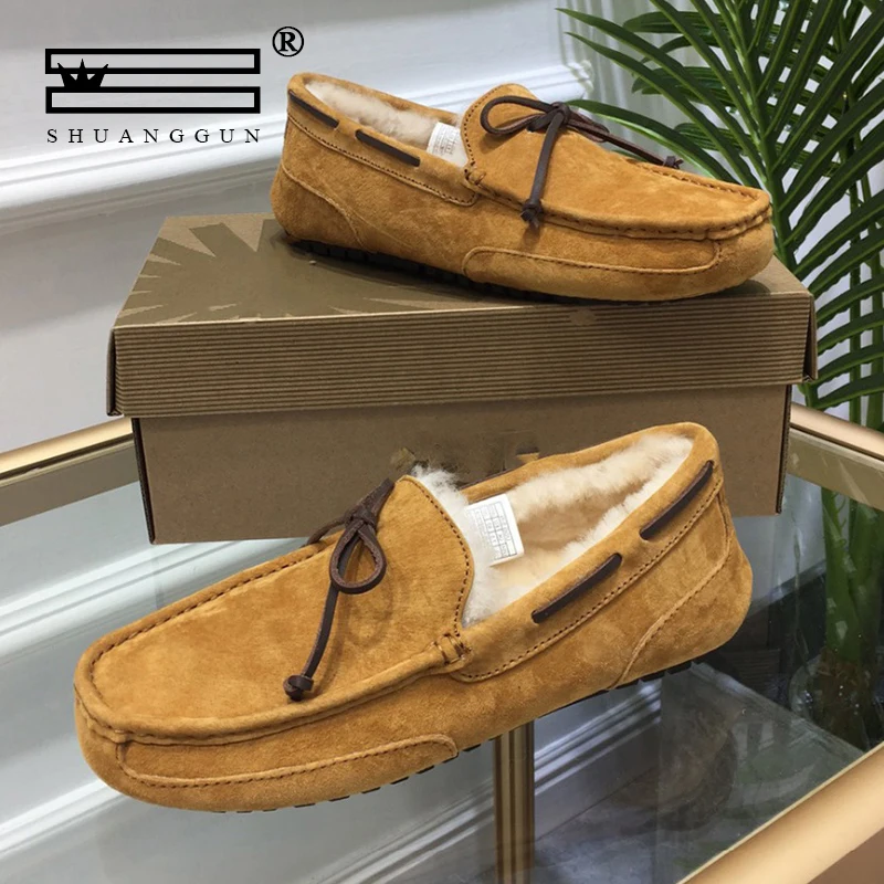 Hot SHUANGGUN Top Fashion Men's Genuine Leather Snow Shoes Lace Winter Shoes Genuine Sheepskin Leather