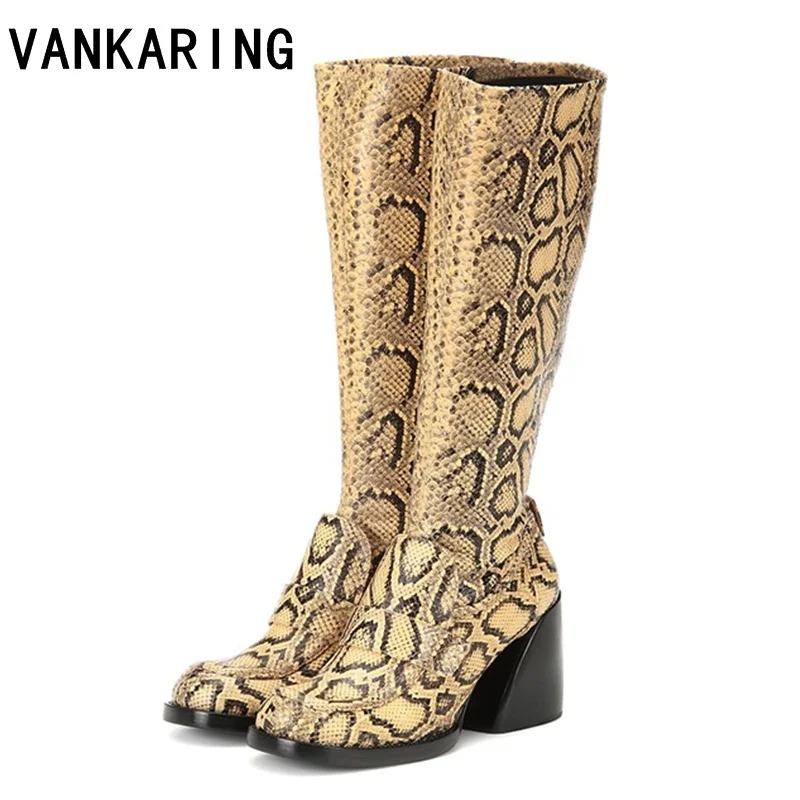Sale fashion style punk snake leather knee high boots woman brand red black martin short boots autumn wi