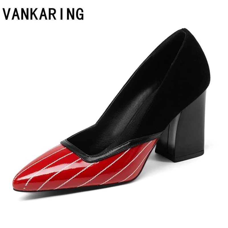 Buy VANKARING 2019 fashion autumn women pumps sexy genuine leather square heel shoes ladies stripe poin