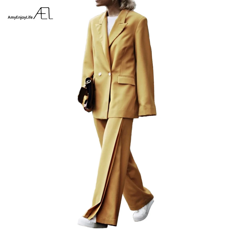 Discount AEL Two Pieces Women Suit 2018 Autumn Boyfriend Style Loose Coat and Fashion Personalized Hip Low C