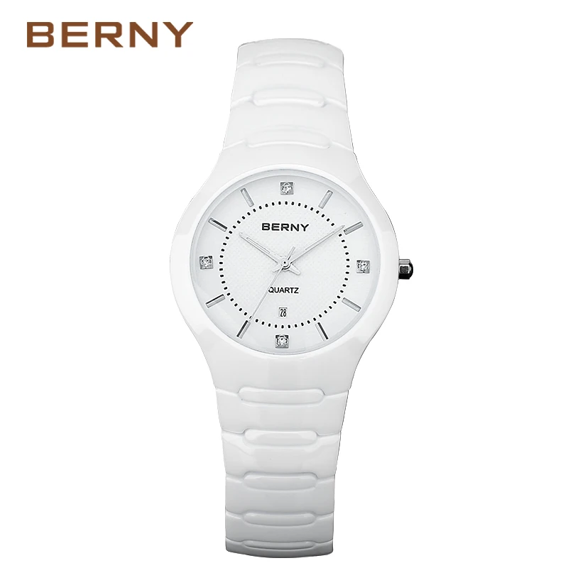 Buy BERNY Luxury Ceramic Ladies Quartz Wrist watches Ceramic Womens Watch Fashion White Ceramic Ladies
