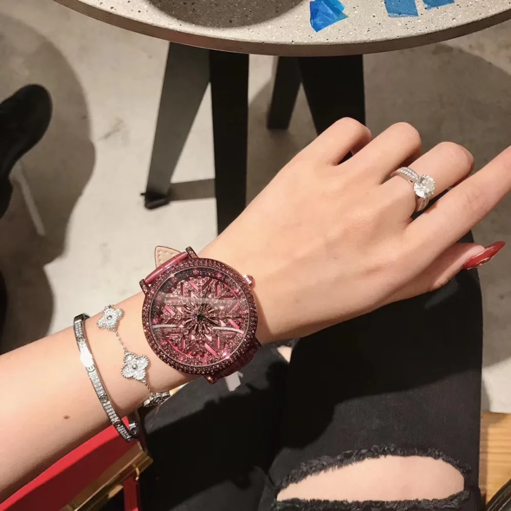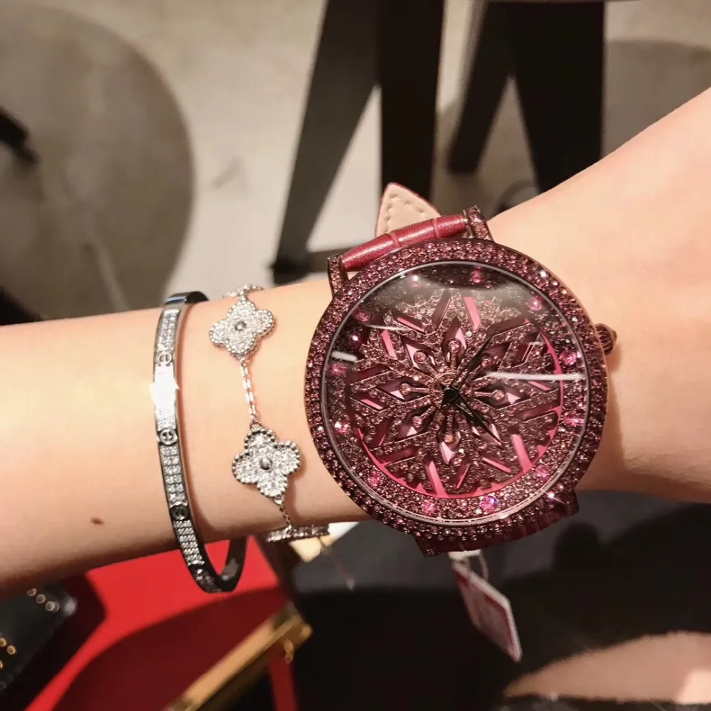 Discount Big Size Snowflake Spinning Watches Women Luxury Purple Crystals Wrist watch Waterproof GOOD LUCK R