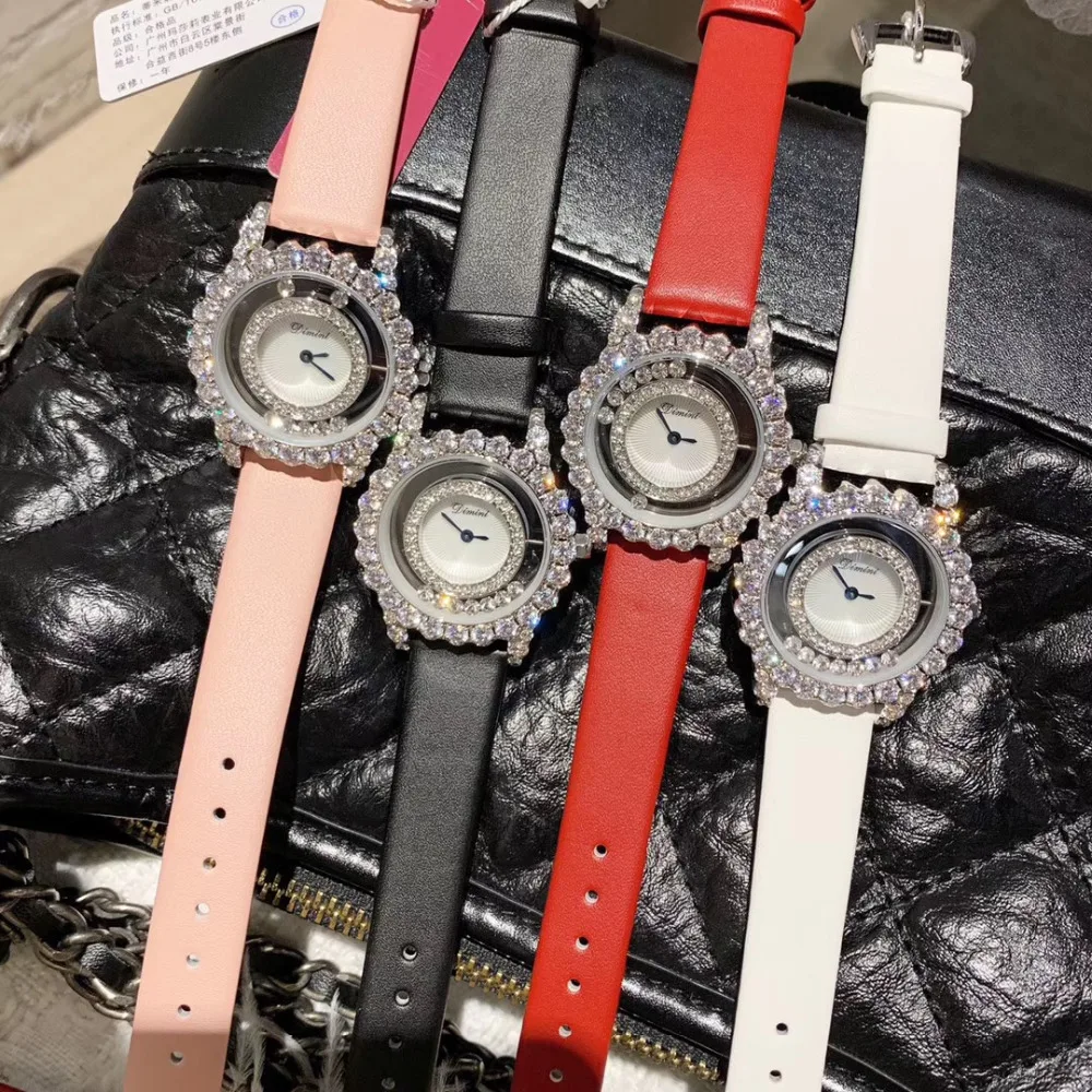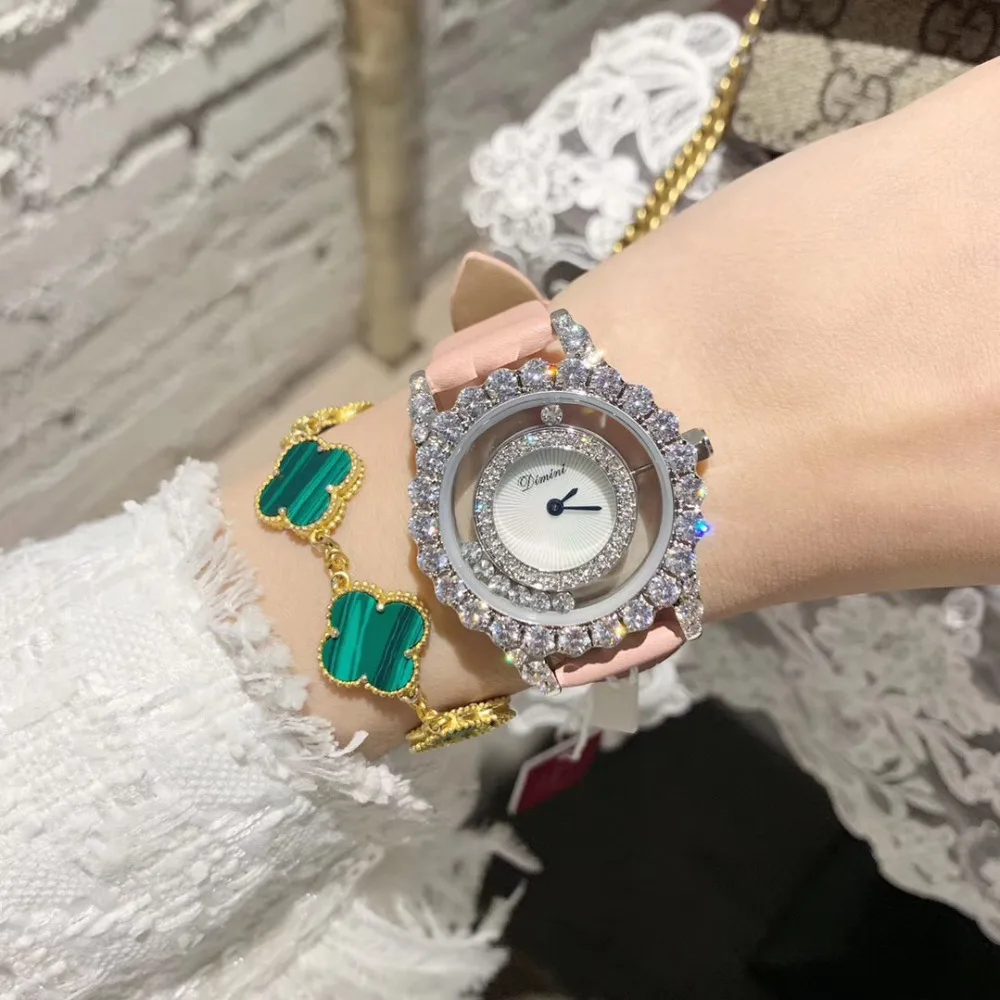 Discount Fashion Movable Happy Crystals Women Dress Watches Luxury Sparkly Rhinestones Jewelry Watch Waterpr